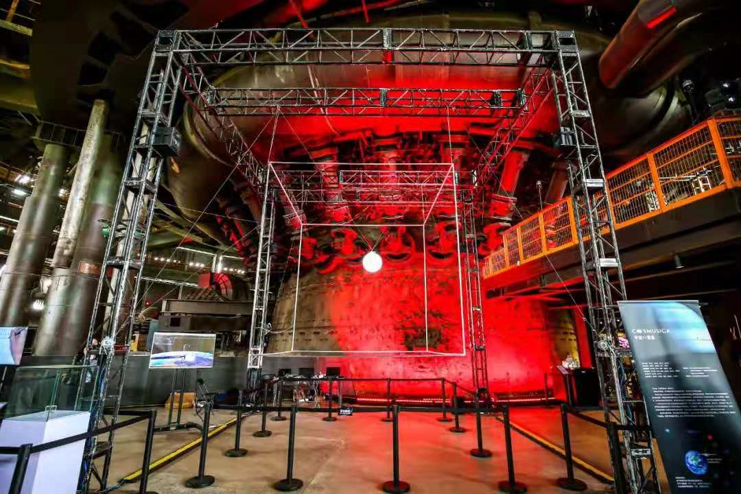 “科幻世”科技艺术概念展举办地首钢园三高炉是首钢园区极具代表性的工业遗存之一。展厅完整地保存了三高炉内部构造,观众在展开对宇宙未来想象的同时,得以置身于整个“赛博朋克”式的工业场景内部——二者联袂互动,相得益彰。