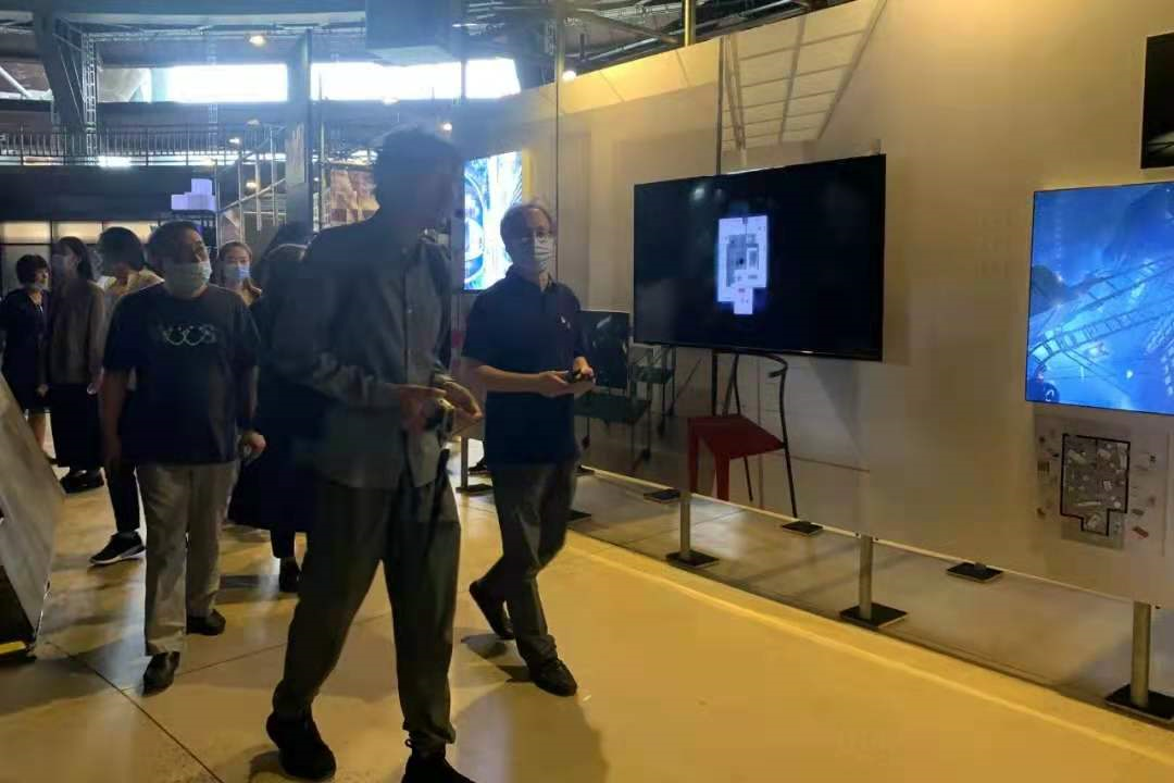 清华大学美术学院信息艺术设计系主任、副教授、博士生导师、“科幻世—科技艺术概念展”策展人王之纲在现场讲解