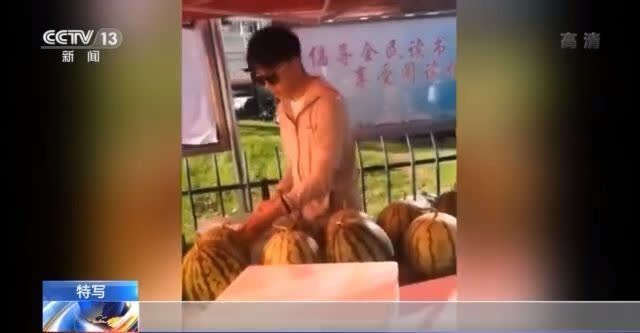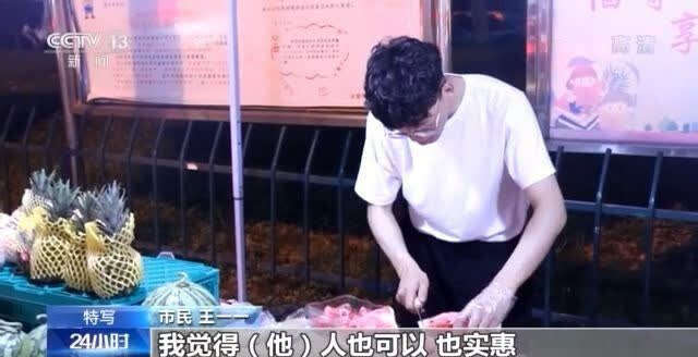 市民 王一一:后昨天买的西瓜巨甜很好吃,然后我觉得人也可以也实惠,自己也喜欢吃,就经常过来买。