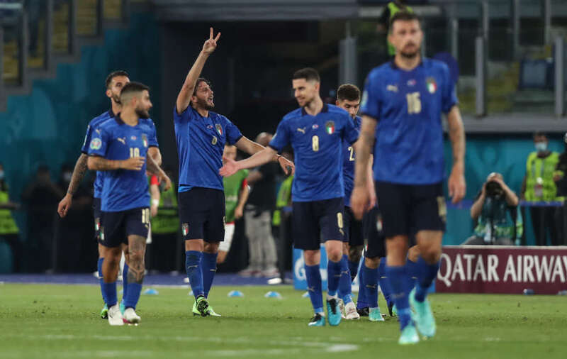 与瑞士队这场比赛,意大利队开局阶段小遇挫折,中卫基耶利尼曾率先攻入一球,但因手球在先被判进球无效,几分钟后这位老将因伤不得不被换下。不过,洛卡特利随后大放异彩,在第26分钟和第52分钟连进两球,帮助意大利队建立2:0的优势。比赛结束前,接连与破门失之交臂的因莫比莱终于远射破门,帮助意大利队三球完胜。
