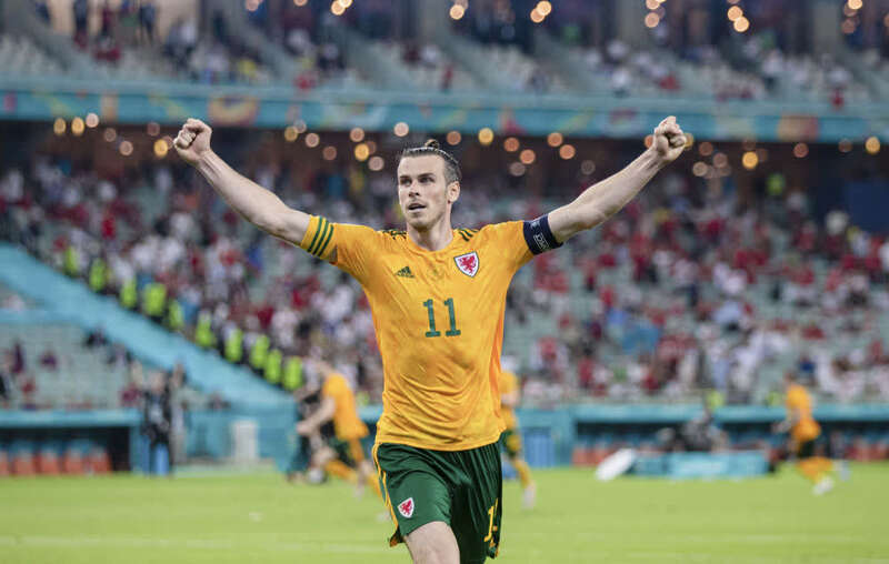 6月16日,威尔士球员贝尔庆祝球队第二粒进球。新华社发(安迪摄)