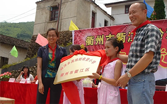 2008年6月,张春燕参加衢江区岭洋乡希望小学落成仪式。