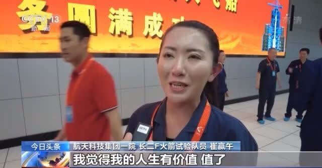 航天科技集团一院 长二F火箭试验队员 崔嬴午:今天我们把神舟十二号飞船和3名宇航员送到中国的空间站,成为第一批入住者,非常激动!我觉得我的人生有价值,值了!