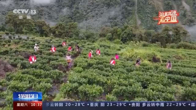 总台记者 孟湛东:在公路沿线还可以看到这样大片的茶园,这一片茶场叫作果果塘茶场。下车之后发现身边有很多的这样的采茶师傅已经开始聚在一起采摘今年的新茶了,墨脱县的茶叶种植总面积是超过了25000亩,人均达到2.5亩。2016年,全县农牧民人均可支配收入是近8000元,而到了去年这样一个数字是提升到了12000多元。