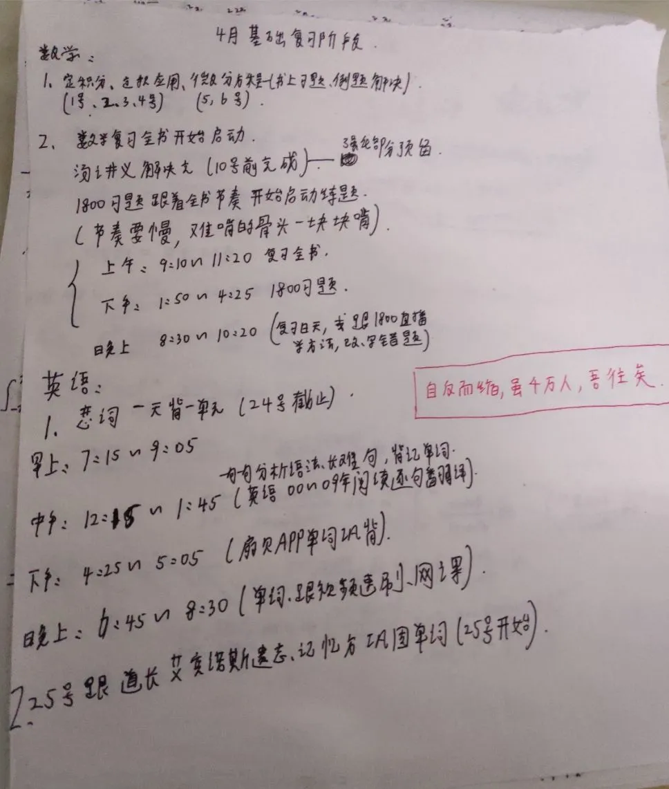 ▲匡煜每日学习计划