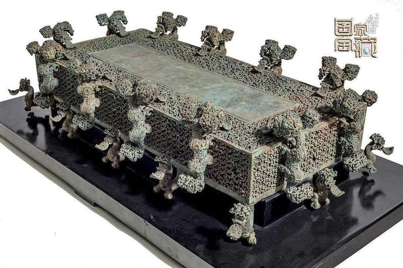 周代把盛放酒具的案台取名为“禁”,以夏商嗜酒亡国为警示,颁布了中国第一道禁酒令《酒诰》。图为河南博物院藏的云纹铜禁