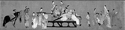 偶像的力量就是那么大,竹林七贤的躺平生活很快就引起了当时文人雅士们的效仿,于是各种奇葩的躺平方式都上线了。这些文人们也是每天开沙龙,并且还围绕某个话题进行清谈辩论,饮酒作乐,开心得不行。无奈“饭圈文化”过于混乱,有些文人躺平方式就有点消极了,比如在家裸奔、炼丹服药,故意长期不洗澡,在身上养蛆……有意思的是,文人们的躺平服还各有不同,比如在《北齐校书图》中,有的名士们居然只穿着名为裲裆的吊带背心,还披上了縠,那是一件性感的轻纱透视装。果然,男人妖娆起来更可怕。