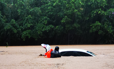 中国青年报客户端深圳讯(中青报·中青网 记者 刘芳)6月22日7时08分,深圳暴雨橙色预警升级为红色预警。早晨6点多就离家开车上班的深圳女教师魏某,行车途中被积水围困,水势迅速上涨没到颈部。就在魏女士生命受到威胁的最后一刻,深圳龙岗民警黄小州及时赶到,砸窗救人,魏女士终于获救。