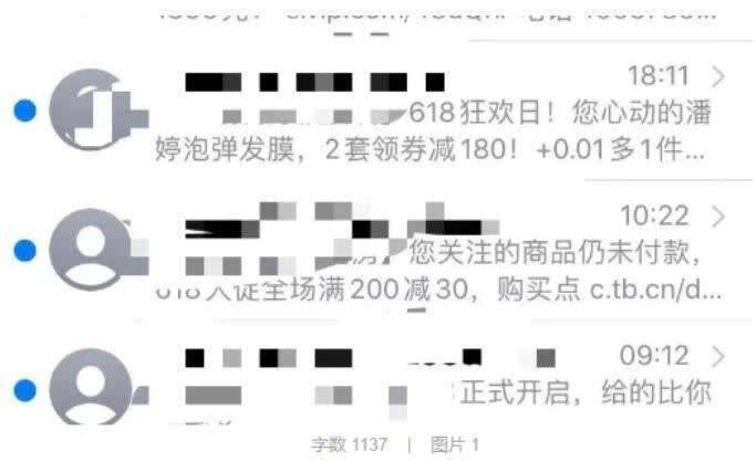 报告显示,监测期内,共收集有关广告短信类负面信息64932条。相关负面信息在6月17日较多。6月16日,工信部曾发布消息,要求严控垃圾短信,规范电商平台“618”短信营销行为。但中消协说,不少消费者吐槽被各种广告短信打扰,希望严控垃圾短信不仅仅是在“618”期间。