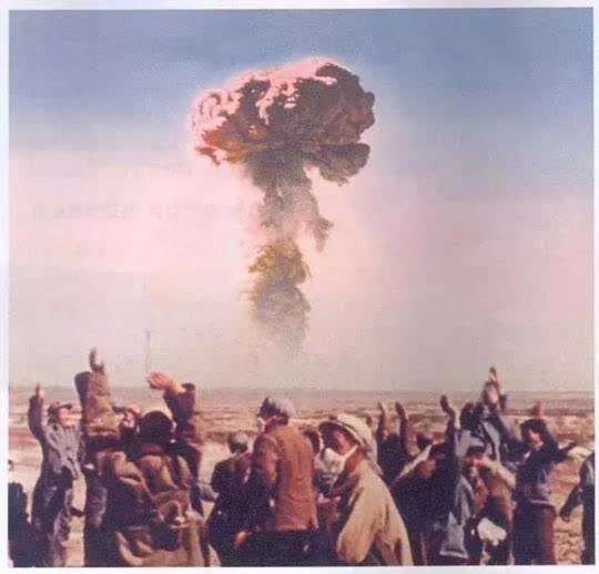 红云冲天照九霄,千钧核力动地摇。1964年10月16日主控站技术人员按下决定历史的电钮。在倒计时从十到零顺序跳动过后,15时,强光闪亮,天地轰鸣,巨大的蘑菇云翻滚而起,直上蓝天,中国第一颗原子弹在罗布泊试爆成功。