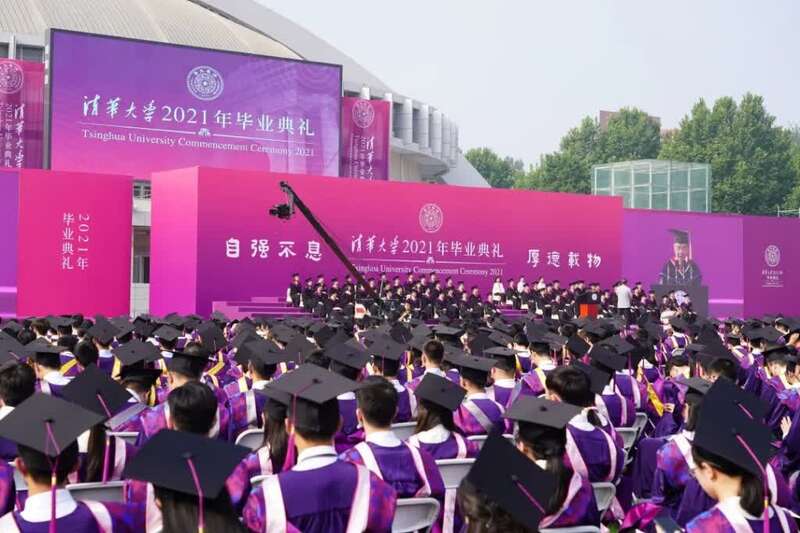 经清华大学校务会议审议,批准2021届3389名本科生毕业。经清华大学学位评定委员会全体会议审议通过,决定授予3488名同学学士学位、授予565名同学第二学士学位。