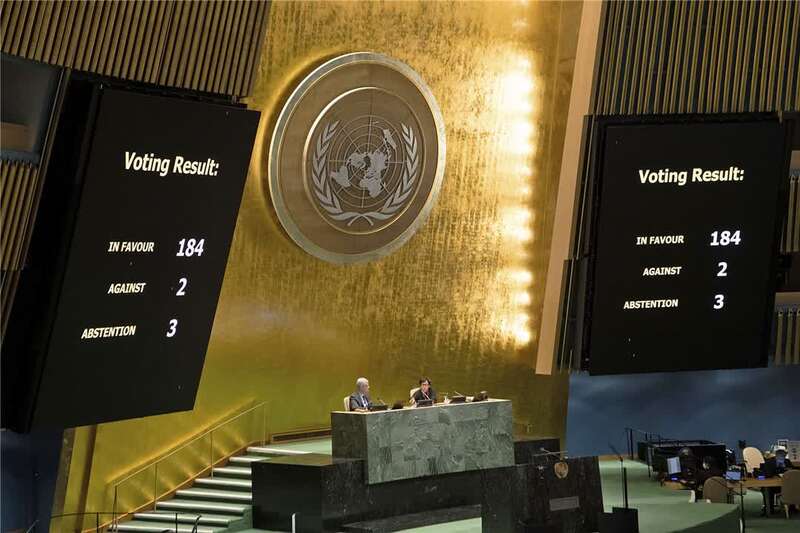 △第75届联大当地时间6月23日高票通过古巴提交的要求美国终止封锁的决议草案