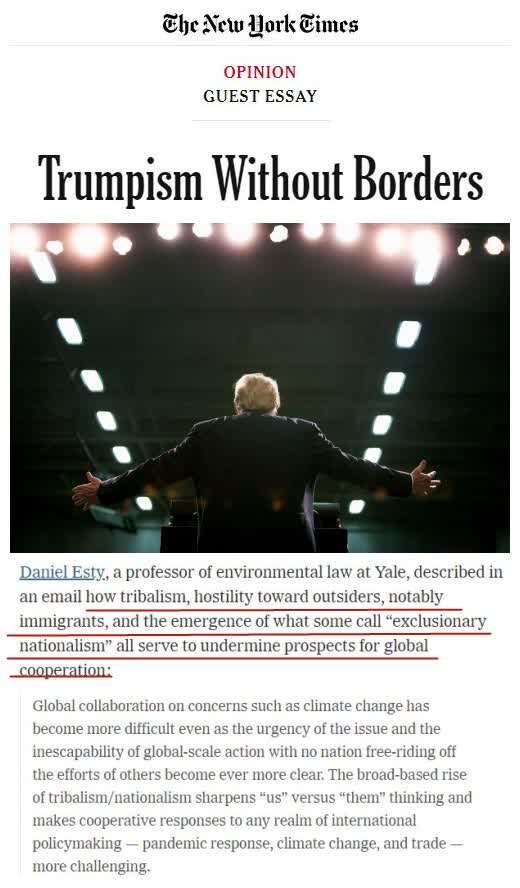 美国《纽约时报》近日也援引耶鲁大学环境法教授丹尼尔·埃斯蒂的观点指出,美国政府奉行的“部落主义”以及“排他性民族主义”破坏了全球合作前景。