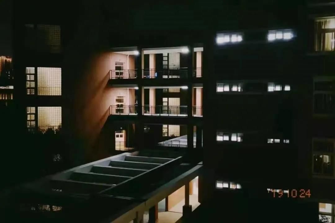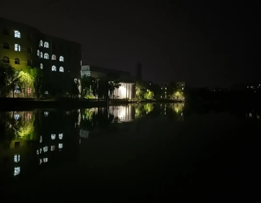 “建筑是夜间校园里最具氛围感的风景。天已经黑了,所有建筑的表面也是陷入了黑暗中,但是灯光会从每一处窗口中方方正正地透出来,每一幢建筑都在方方正正的灯光的保护下,从而不会被黑暗吞噬掉。总在夜间的校园里,看着这一幢幢建筑物,就不会觉得孤独。”