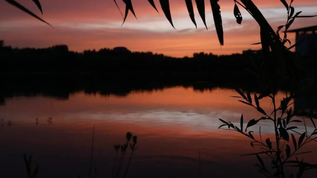 “我很喜欢天一湖从黄昏慢慢走向黑夜的过程。晚霞的红爬上水面、笼罩住建筑,湖对岸的绿树随着晚霞的光被黑暗吞噬也失去了它的颜色。水天交接,连为一体,开拓、空旷的环境配上色彩的变化,心特别容易静下来思考些什么。”