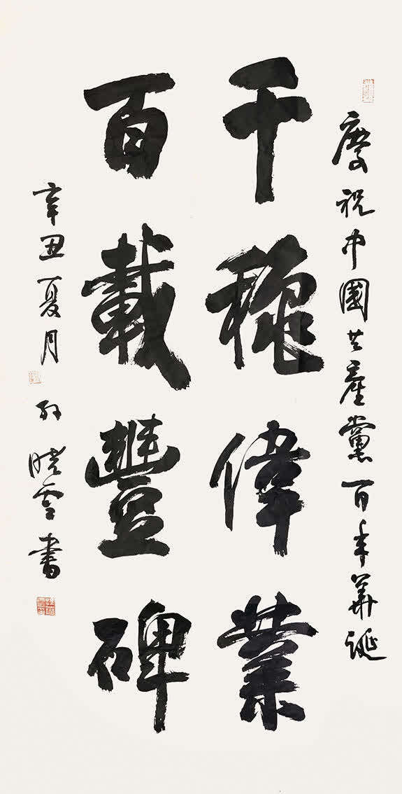 【寄语百年】一百年来,中国共产党人前赴后继、不怕牺牲,换得今日山河无恙,国泰民安。学党史、明初心,撰文记史、濡墨抒情,是当代书法艺术的一项重要功能和作用。站在建党百年新起点,广大书法家以饱满的热情书写时代,以人民的需要奉献社会,于守正出新中谱写壮美华章。功用与艺术齐驱,文章与翰墨相映。坚持以人民为中心的创作导向,在作品中反映中国风、中国味、中国情,让我们手下艺文呈彩、妙笔生花,让写好书法成为中国人的时尚,让新时代的书法事业不断发展,蒸蒸日上!