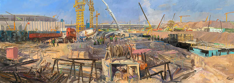 《雄安进行时之一•筋骨》 布面油画 200X600cm 2020年 范迪安 绘