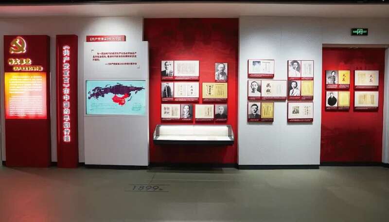 在第四展厅中,通过制作的电影和特效视频塑造了英勇悲壮的“巴黎公社革命”、惊心动魄的“十月革命”,形成全方位的视觉冲击,让人仿佛穿越并置身历史情境。在《共产党宣言》与中国部分,通过多媒体技术和油画作品,展示“中共一大”召开的场景,介绍从上海石库门到南湖红船这一开天辟地大事变的过程和意义,突出艺术与情境的浸润。