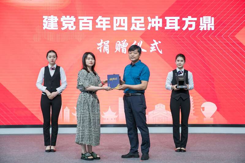 据了解,铜鼎捐赠仪式是当地党史学习教育的非遗特色内容,当地将党史学习教育与本土特色文化相结合,通过非遗作品展示让红色文化走入百姓心中。