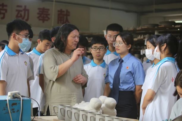 6月28日上午9点,河北省曲阳县第二初级中学30余名学生走进陈氏定窑瓷业有限公司,参加由该县检察院组织开展的“携手关爱·助梦远航”主题活动。在这里,他们学法律知识,看定瓷生产,听人生故事。