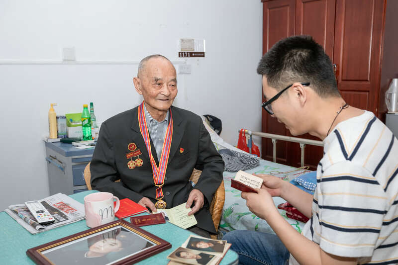 他的胸前挂着大大小小的奖章,其中最亮眼的是最近颁发的“光荣在党50年”纪念章。在江苏省苏州市相城区望亭镇,共有261名老党员获颁这一纪念章。