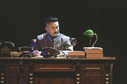 50集的电视剧,最终变成四小时的话剧,节奏快是意料之内的。为了给其他角色留足空间,张志坚主动删去了七八页纸的台词。但他的上半场还是马不停蹄,最短的抢装时间只有几十秒。6月29日,首演前一天,他完整地在台上演了两遍,只睡了五个小时。但很快,他就适应了这样的节奏。每次演出结束,大家都兴奋得睡不着,他的房间总是聚满了剧组的人,大家热烈地讨论当天演出的精彩与失误之处。