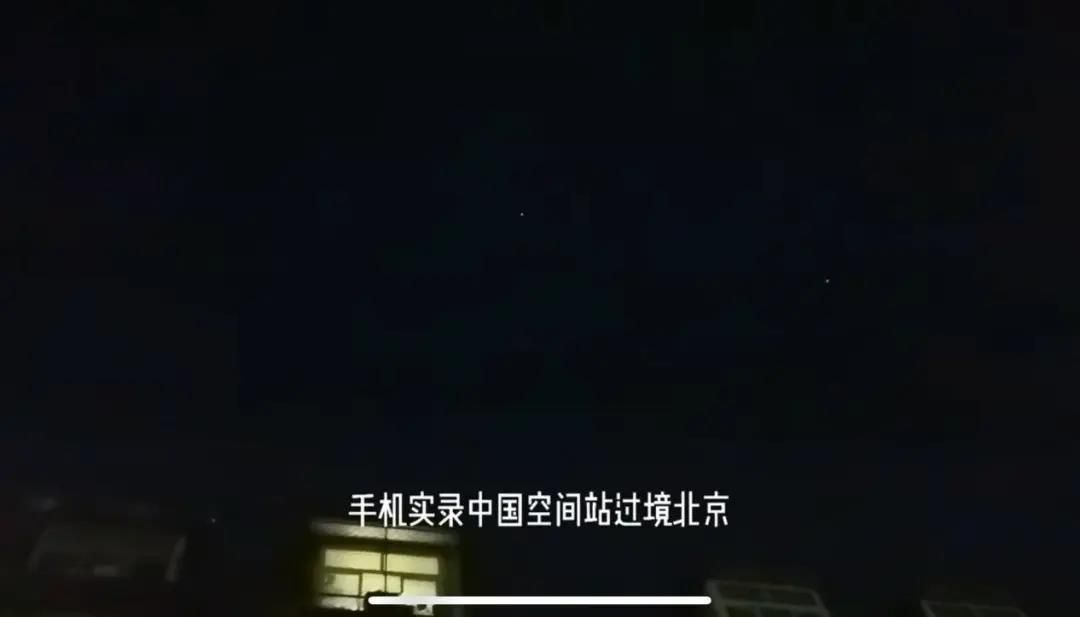 拍摄者的语气难掩激动的心情,还一度与空间站对起话来:“嗨,你们好吗?你们正在飞过北京……”