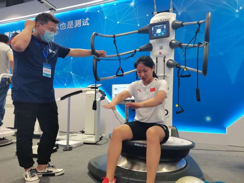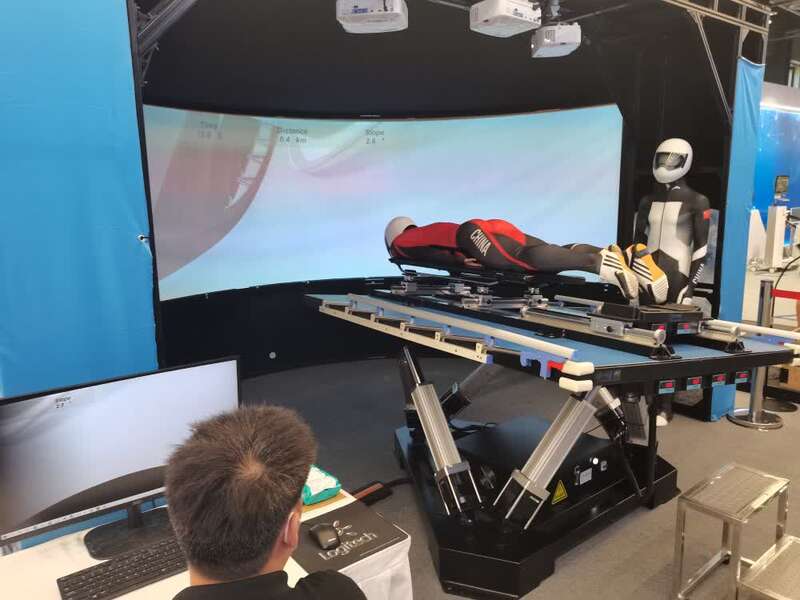 在创新科技成果区域,一个被称为“六自由度电动模拟体育训练系统”的仪器吸引了观众的注意,据该仪器研发人员胡光有介绍,这个仪器可以搭载如钢架雪车、雪橇、越野滑雪、冬季两项等多个冬奥会冰雪项目。该系统由我国完全自主研发、将六自由度运动系统技术、VR虚拟现实技术、数字仿真技术相结合,为运动员提供逼真的专项运动的训练和比赛环境,“现在大家看到的是钢架雪车训练系统,在专用赛道中,最高速度可达每小时130公里。”胡光有说,六自由度设备是为了克服运动员反季节训练以及场地、天气等因素的限制而诞生的多技术融合系统,将航空技术与体育碰撞。在训练过程中,既可以协助运动员进行核心稳定性训练,提高核心肌群力量和平衡能力,又可以让他们进行专项技术训练,强化最优技术模式训练,提高训练效率。