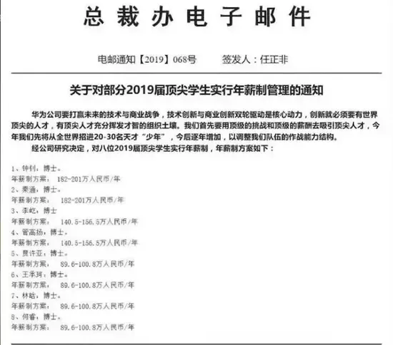 2020年,华科计算机专业博士张霁入职华为,并且拿到华为“天才少年”项目最高一档年薪201万元。