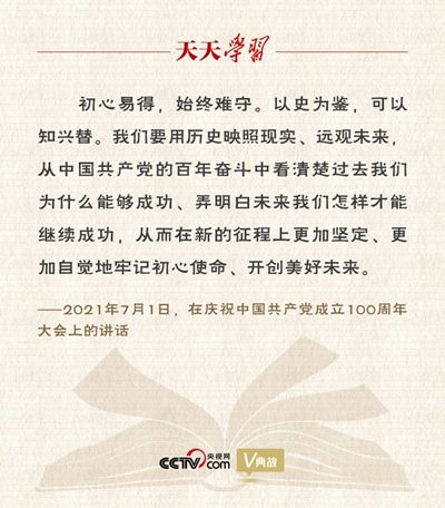 以史为鉴,可以知兴替。在庆祝中国共产党成立100周年大会上,习近平总书记发表重要讲话,九次强调“以史为鉴、开创未来”,指出“我们要用历史映照现实、远观未来,从中国共产党的百年奋斗中看清楚过去我们为什么能够成功、弄明白未来我们怎样才能继续成功,从而在新的征程上更加坚定、更加自觉地牢记初心使命、开创美好未来”。