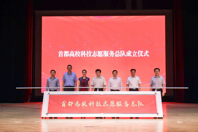 与会嘉宾共同启动成立首都高校科技志愿服务总队。北航供图