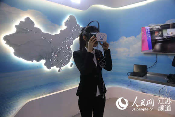 红色教育基地参观者正在利用“VR”技术体验实境党课。连云区委宣传部供图