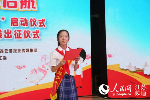 在连云港市“七彩的夏日”启动仪式暨连云区“小红军”红色实践出征仪式上,“新时代好少年”辛姝萱作为学生代表,向全市青少年发出利用假期开展“游览一处红色景点”等“七个一”活动,在红色实践中厚植爱党爱国情怀。