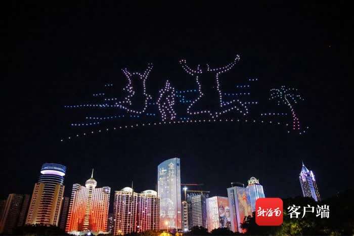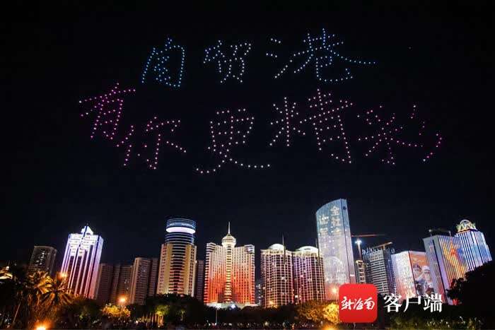 随着指挥员一声令下,520架无人机一飞冲天,惊艳海口夜空。当晚的无人机编队表演,以海口“游”你更精彩为主题,在连续10分钟的表演中,无人机在夜空中展示了8组画面,排出海口钟楼、椰树、海浪、帆船、免税、海滩游玩等带有海口元素的造型图案,以及精确地演绎出“海口寻城去”“阳光海口拥抱你”“自贸港有你更精彩” 等字样,用这种特别的方式进行一场星空下的“告白”,并将海口独一无二的魅力向大家娓娓道来,以此讲述阳光海口的故事,展示自贸港新形象。