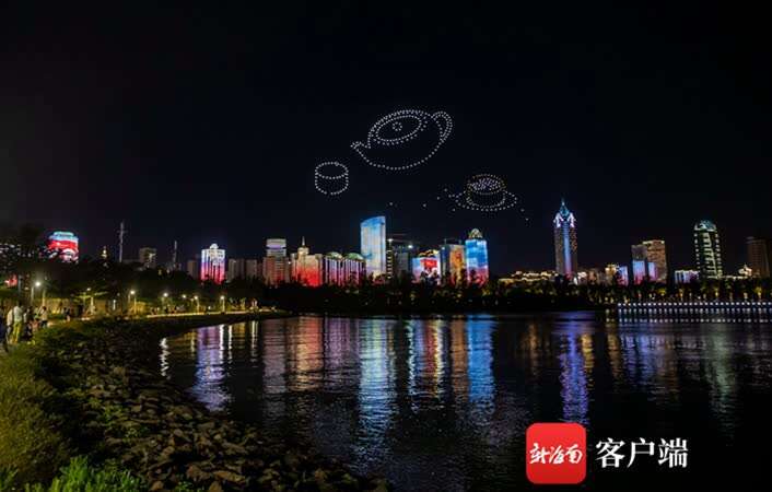 去四川重庆,一定要吃火锅。来海南海口,一定要体验老爸茶文化。无人机编队在夜空中展示出的老爸茶造型,将大家带入海口不可错过的“慢生活”体验。