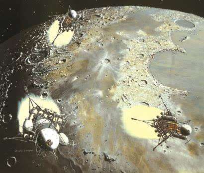 20世纪的天文艺术迎来又一次高光时刻,身居C位的艺术家如此之众、正恰繁星满天,其中最富盛名的可谓有着现代天文艺术鼻祖之称的美国艺术家博尼斯戴尔。不过在讨论博氏之前,不得不提及他的两位“领路人”。首先是英国“皇家天文学会”会员、但在天文学与绘画领域都属于半路出家的“业余人士”博尔顿。有趣的是:这位美国博氏坦言对那位英国博氏并无好感,因为“业余”的博尔顿常常犯下令人恼怒的错误,正是怀着“纠错”的冲劲,博尼斯戴尔入了天文插画的坑。不过,需要为博尔顿正名的是:他仍然发明了一种模型复刻技法,至今为众多艺术家所沿用。简言之,便是通过塑性材料捏制天体景观模型,对模型进行拍摄后,直接在印刷品上添加陨石坑、小行星等丰富细节,这种雕塑与油画无间融合的新颖形态令作品呈现出虚实难辨的幻象感。