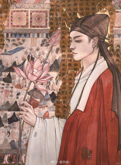 曹航恺有一个小习惯,就是在上传画作时附上大段文字,写背景资料、相关诗词和自己的感受。他笑称:“可能也很少有粉丝有耐心看完,他们给我的评论大多还是围绕画。”但他乐此不疲,坚持给大家“科普”。最近的“敦煌供养人”系列,他干脆将创作过程拍成了视频,背景资料也放在视频末尾,引来粉丝的惊呼:“竟然真的是用黄土画的!”“香灰也能入画吗?”“北周跟西魏的供养人真的各有各的美……”
