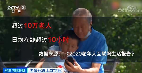 数据显示,我国60岁及以上群体的网络普及率为38.6%。 其中,有超过10万老人日均在线超过10个小时。