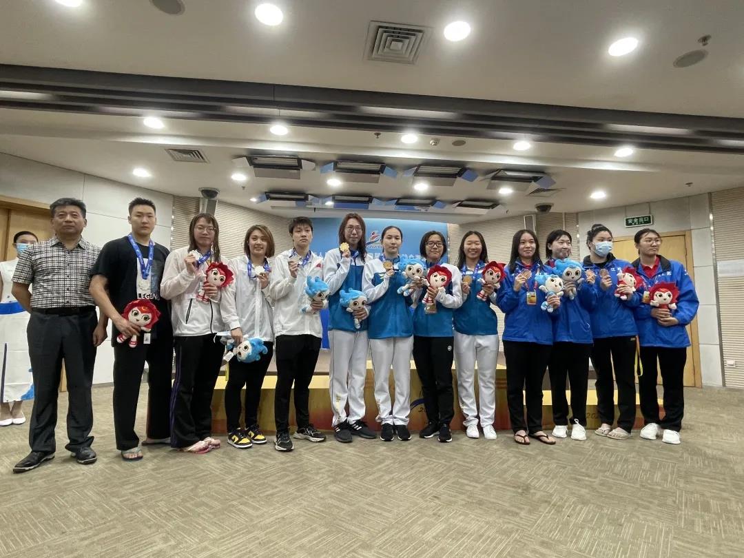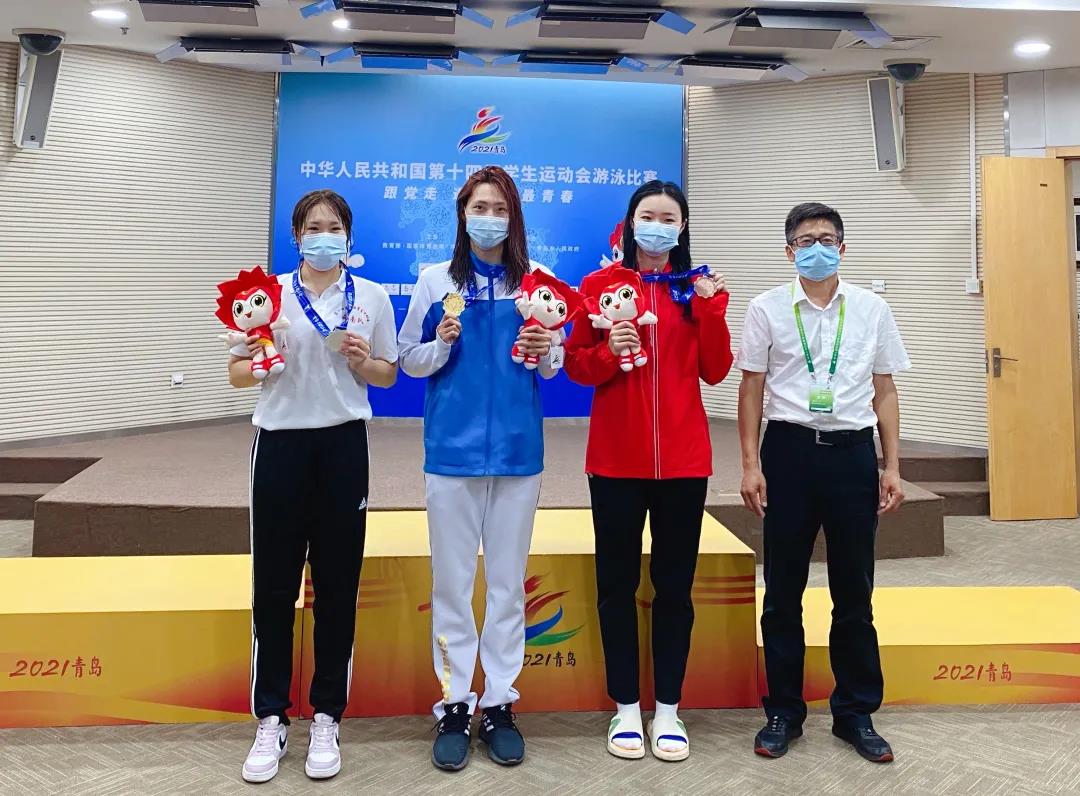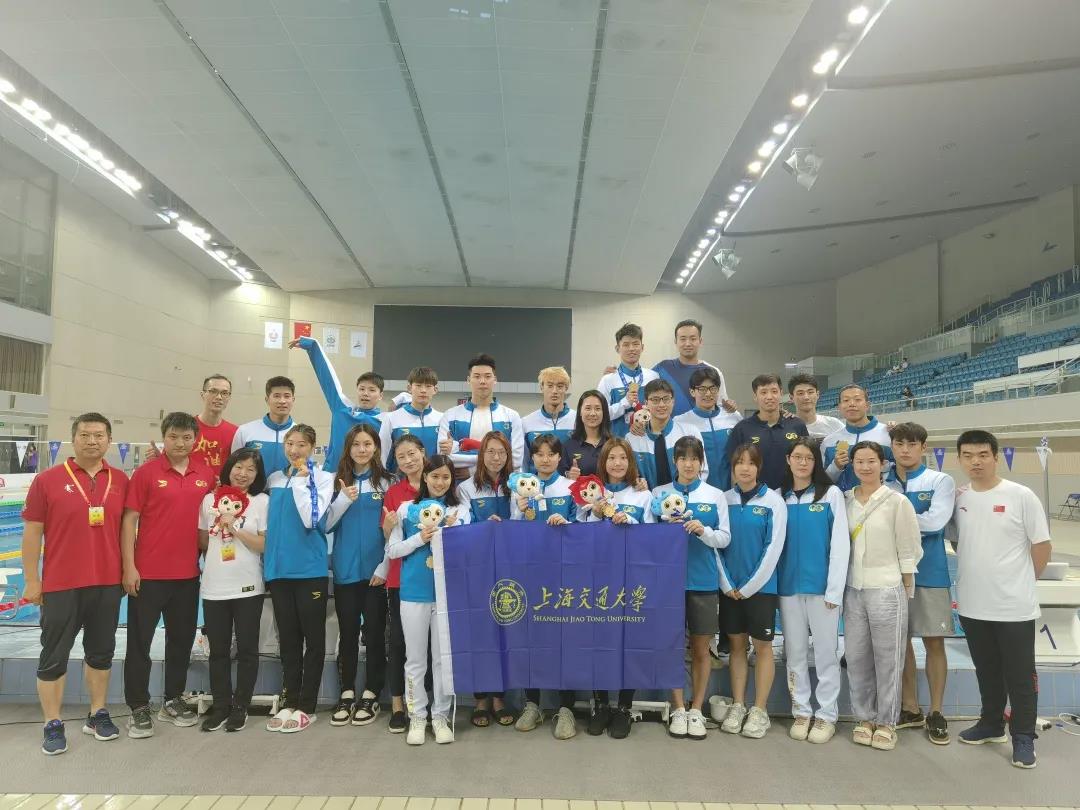 在游泳比赛中,交大高水平游泳队6个比赛日摘得31金11银7铜共49枚奖牌,打破四项赛会纪录。