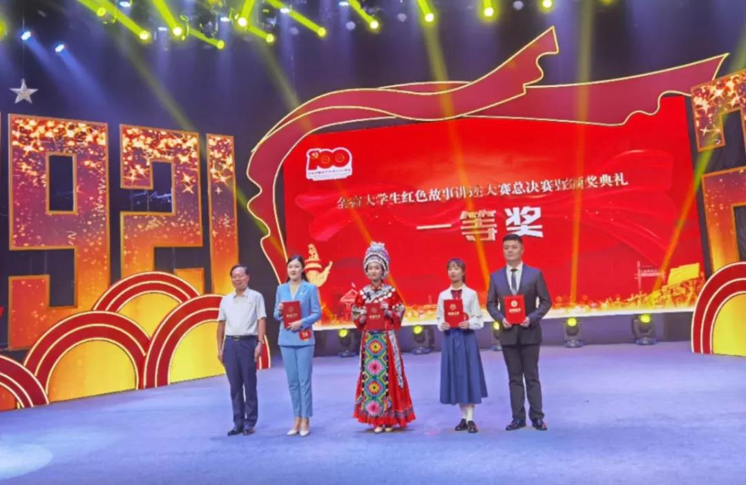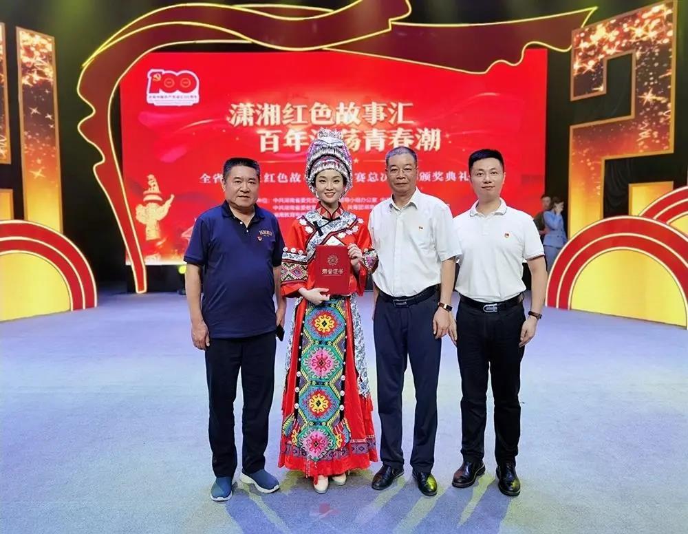 比赛现场,参赛选手们以湖湘革命先辈、开国将帅、英雄模范和在百年党史历程中具有重大影响的历史事件为基本素材,紧扣红色主题,从自身独特视角出发,讲述红色故事。湖南师范大学文学院硕士研究生江静雪第一位出场,以《一首湘西民歌的家国情》为题,深情讲述了湘西土家民歌《马桑树儿搭灯台》背后集思想性、故事性、教育性于一体的红色故事,生动诠释了在百年党史中中国共产党员的初心使命与家国情怀,感动了在场所有评委与观众,最终荣获全省最高奖。