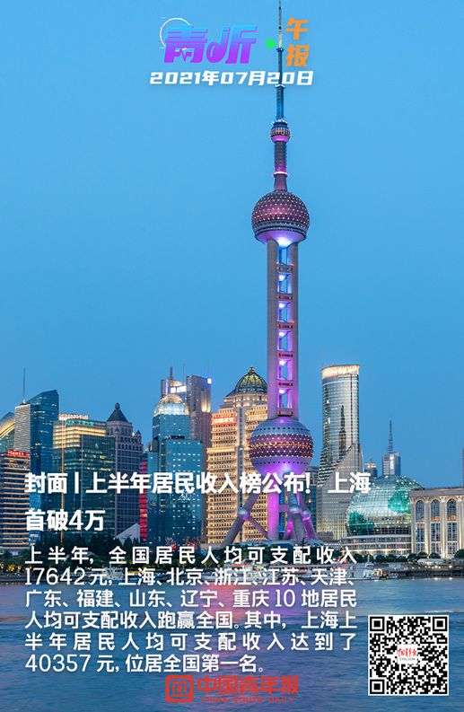 国家统计局近日更新了31省份2021年上半年居民人均可支配收入数据。上半年,全国居民人均可支配收入17642元,上海、北京、浙江、江苏、天津、广东、福建、山东、辽宁、重庆10地居民人均可支配收入跑赢全国。其中,上海上半年居民人均可支配收入达到了40357元,位居全国第一名。详情>>