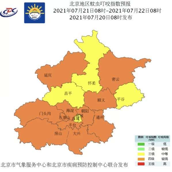 北京市7月16日首次发布北京各区“蚊虫叮咬指数”预报,至今已连续5天发布相关预报。