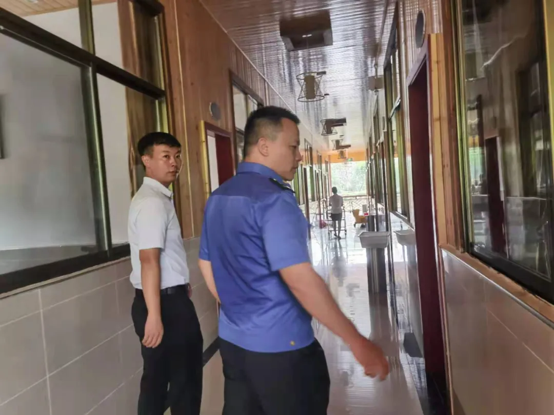 7月16日上午,巡查后的陶恺(右)回到中队,制服都汗透了。