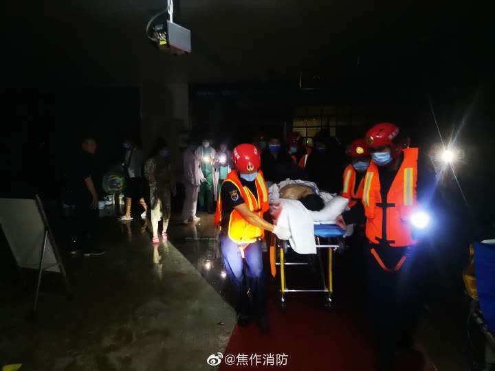 7月21日早,焦作消防发布信息称,接报到郑大一附院(河医院区)转移病人任务后,焦作消防救援支队增援郑州救助力量第一时间赶赴救援地点开展救援。经向院方负责人了解, 共有80余名ICU重症病人需要转移,大量轻度病人和家属被困一楼大厅。