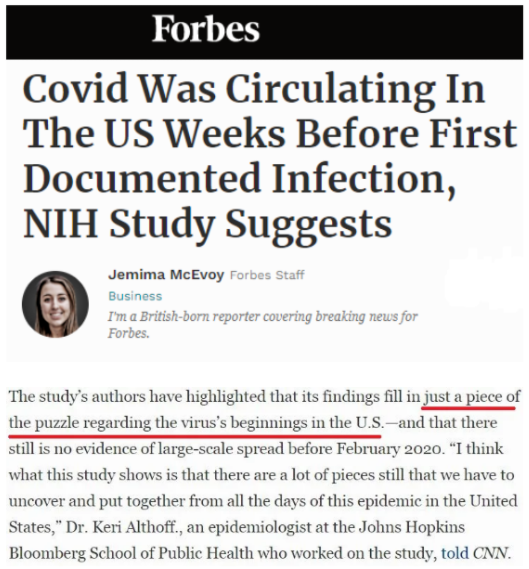 就在上个月15日,美国国立卫生研究院(NIH)最新公布的研究结果支持了CDC的研究发现:新冠病毒早在2019年12月就已在美国传播。