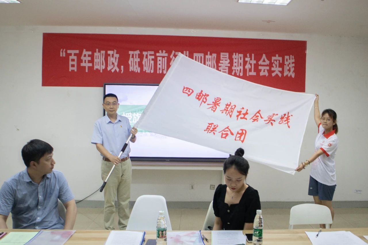 会上,南京邮电大学现代邮政学院党总支副书记、副院长刘星致欢迎辞并为四邮暑期社会实践团授旗。来自四所邮电高校邮政学院的老师、同学分别介绍了本学院学科建设的现状,阐述了对现代邮政业的看法与期望,共同表达了为现代邮政业培养新型人才,为邮政事业发展添砖加瓦的美好愿景。