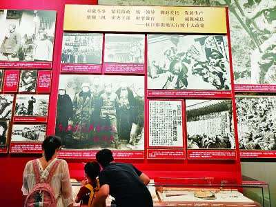 延安时期,党在领导边区法治建设的过程中,进行了历史性探索。《陕甘宁边区施政纲领》成为抗战时期边区的根本大法。“黄克功案件”的审判,彰显了从严治党、从严治军的决心。“马锡五审判方式”的确立,为新民主主义司法制度注入了新鲜血液,也为新中国司法制度的建立提供了有益经验。图为观众在参观抗日根据地建设有关情况。