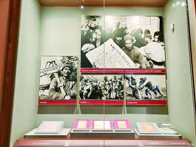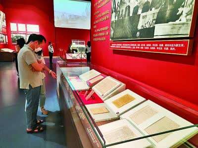《中华苏维埃共和国宪法大纲》是第一部由劳动人民制定的根本法,是共产党领导人民反帝反封建的伟大纲领,为以后制定民主宪法提供了宝贵经验。图为展览中的《中华苏维埃共和国宪法大纲》文本。