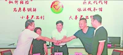 发扬新时代“枫桥经验”,运用法治思维和法治方式化解矛盾纠纷。图为在浙江省诸暨市枫桥镇调解志愿者联合会的调解下,当事人握手言和。