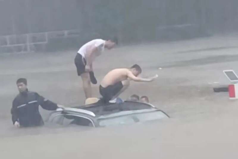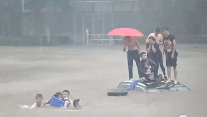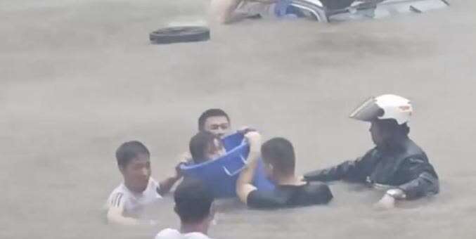 这两天,一条不到2分钟的视频在朋友圈和多个短视频平台广泛传播。郑州大雨中,一辆黑色SUV被困在路中,就在洪水快要没过车顶,千钧一发之际,众人向汽车游去,大家爬上车顶,砸破车窗,救出2个孩子和1个大人,并用水桶将孩子成功运送到了安全地带。
